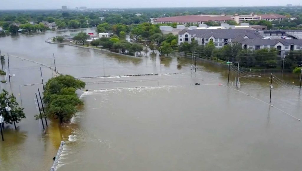 Η τρίτη είναι από ένα πλημμυρικό φαινόμενο στο Texas των Ηνωμένων Πολιτειών (Σχ. 3α, 3β). Οι δυο φωτογραφίες έχουν διαφορά δύο ημερών (25 – 27 Αυγούστου 2017). Από το ύψος του νερού στη δεύτερη φωτογραφία καταλαβαίνει κανείς το μέγεθος του φαινομένου, όπου ακόμα και τα μεγάλα αντιπλημμυρικά έργα δεν μπόρεσαν να παροχετεύσουν με ασφάλεια το νερό.