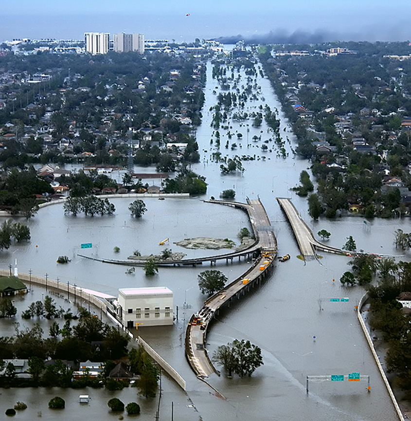 Για να καταλάβει κανείς το τι σημαίνει ένα ακραίο πλημμυρικό φαινόμενο, παραθέτω ενδεικτικά τέσσερις φωτογραφίες. Η πρώτη είναι από την πόλη της Νέας Ορλεάνης στις Η.Π.Α. μετά τον τυφώνα Κατρίνα το 2005, που οδήγησε σε κατάκλιση, για αρκετές εβδομάδες, του μεγαλύτερου μέρους της πόλης και είχε ως απολογισμό 1.400 θύματα και ένα τρομακτικό οικονομικό και κοινωνικό κόστος (Σχ. 1α, 1β).